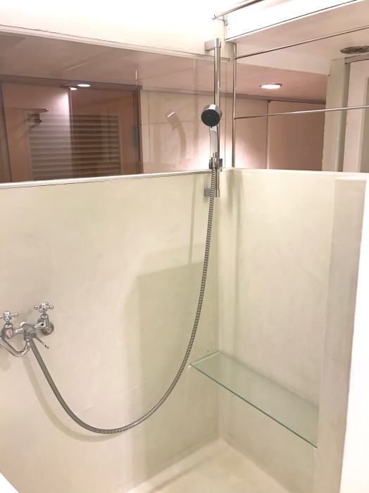 あ、ひとつ大事なことを忘れていました。お風呂場にドアがありません!! お風呂場にはドアがないとダメだという常識を捨ててみました。 お風呂場からの湯気は、漆喰壁と換気扇によって湿度調整してくれてます。